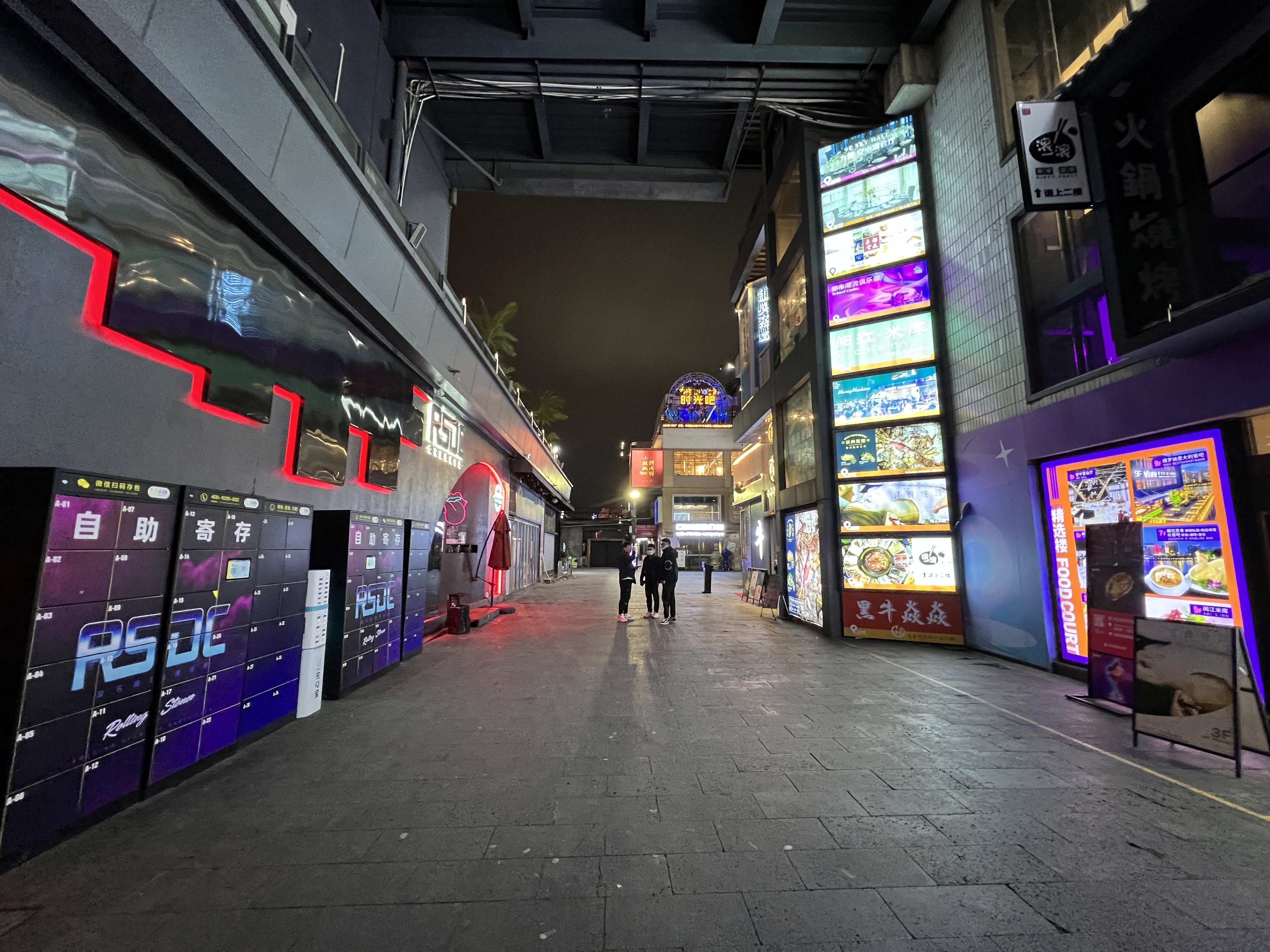 对于影像旗舰来说,夜景才是展现实力的主战场。从三者的实际表现来看,它们都展现出了旗舰机型的亮度以及色彩水平。iPhone 13 Pro的夜景思路是提升整体的亮度,提升了高光的亮度表现,让建筑的外墙霓虹灯更为明亮,不过在一定程度上牺牲了暗部细节。
