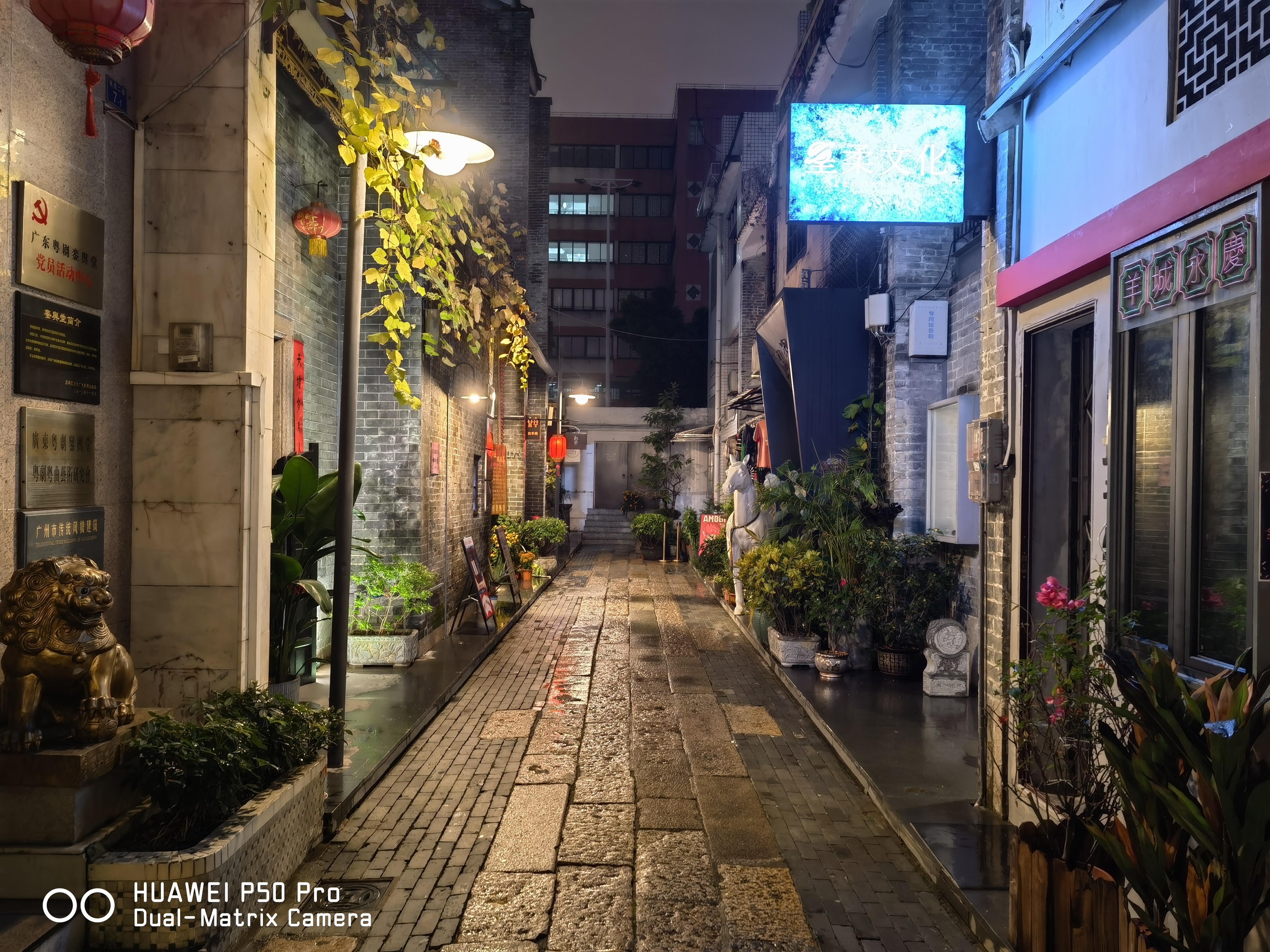 在极暗光环境下, 三者的表现开始出现了一些区别。iPhone 13 Pro的亮度非常高,很好的还原了雕塑灯光的亮度以及背后建筑物的外挂霓虹灯。不过出现了部分过曝现象,算是一个小小的不足。华为P50 Pro则延续了上一张的夜景思路,强调高光与暗部细节的结合,灯光不如iPhone,但是对于暗部、高光的把控更为出色。OPPO Find X5 Pro的思路介于两者之间,借助OPPO|哈苏影像系统,它在画面亮度、细节、高光、色彩方面找到了一个均衡点,让观感更为平和。